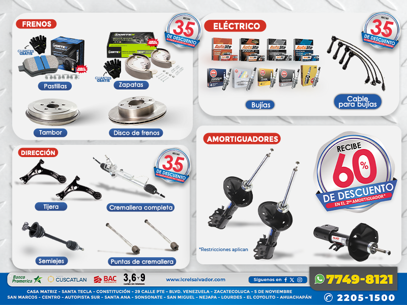 Conoce todas las marcas que han confiado en LCR desde 1952 en el mercado de repuestos automotriz de El Salvador, consolidándose como una empresa líder en el rubro